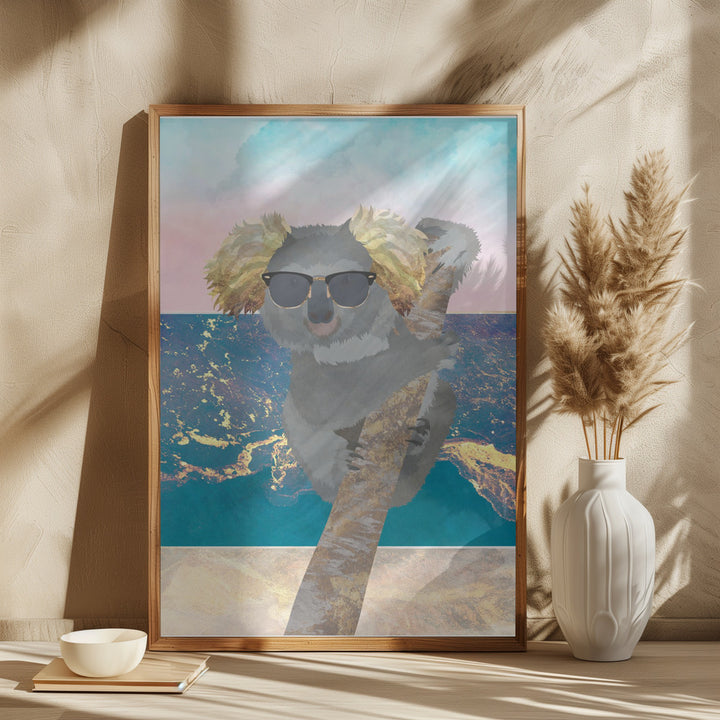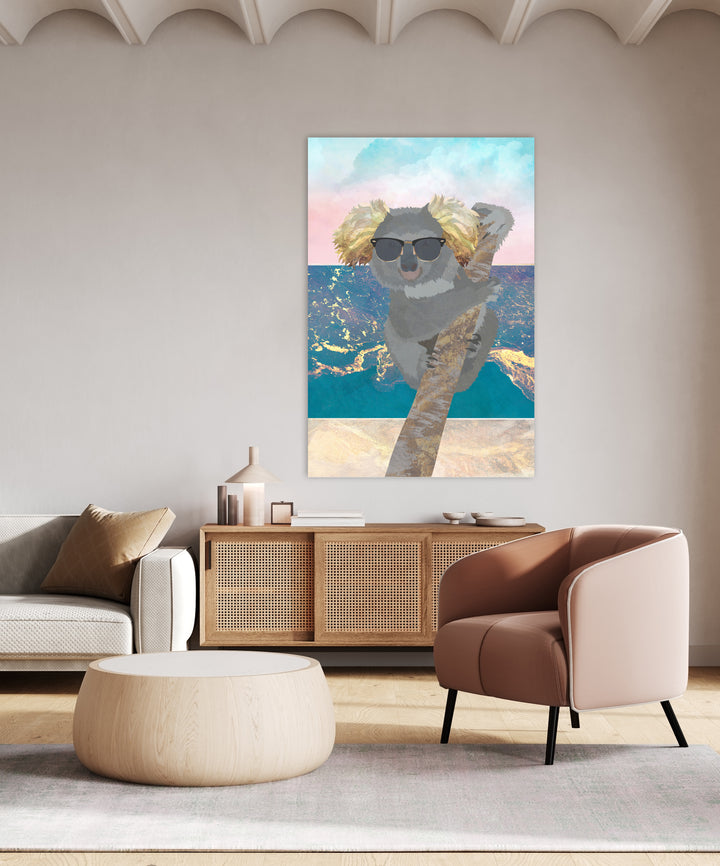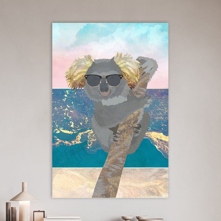 Deze vrolijke wanddecoratie brengt direct een zomers gevoel in huis met een ontspannen koala die geniet van strand en zee. Perfect voor interieurs met een frisse, moderne uitstraling of een speels accent. Het schilderij past geweldig bij kinderkamers, een strandhuis of iedere ruimte die wel wat vakantiegevoel kan gebruiken.
