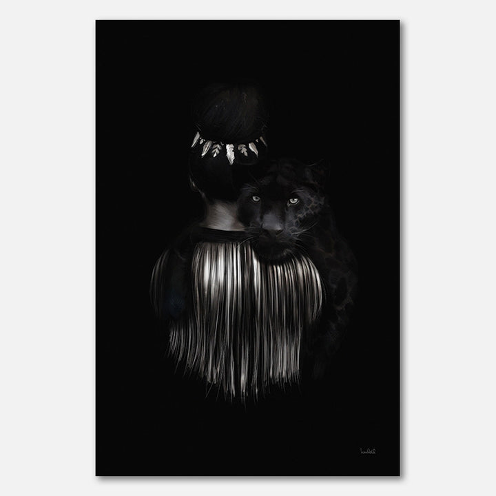 Kora is een majestueuze en mysterieuze poster, met mooie gouden details. Kijk eens naar de zwarte panter die aan de schouder van de vrouw hangt! Eén van onze donkere ontwerpen, die de illustratie een extra rauwheid en randje geeft.