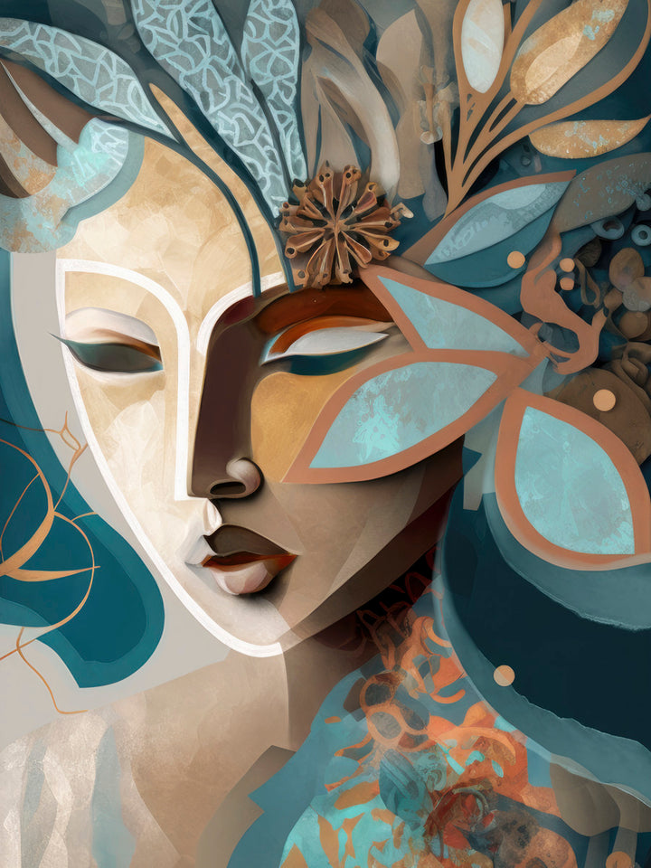 Dit schilderij combineert botanische vormen en levendige kleuren zoals turquoise, blauw en groen, waardoor het een frisse en eigentijdse vibe aan elke ruimte toevoegt. De wanddecoratie straalt een zacht vrouwelijke energie uit en past perfect in een modern, botanisch of multicultureel interieur. Dankzij het abstracte en veelzijdige karakter brengt het natuurlijke schoonheid aan je woonkamer, slaapkamer of kantoor. Met dit schilderij geef je jouw interieur moeiteloos een unieke en uitnodigende sfeer.