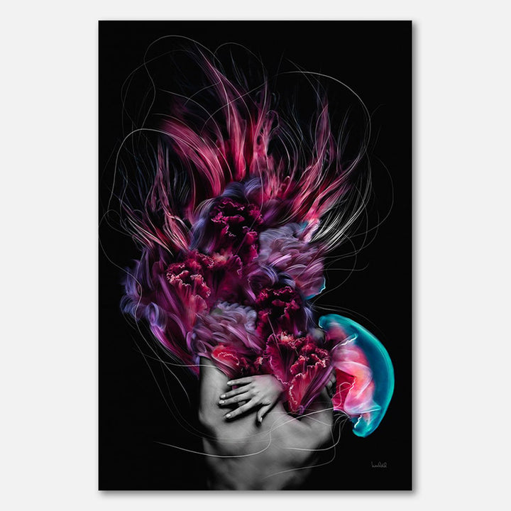 Met zijn levendige en heldere kleuren heeft Liva een heel bijzondere uitstraling, bijna neon! Maak een statement aan de muur met deze kunstposter geïnspireerd op kwallen en de zee.