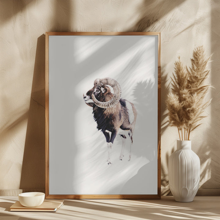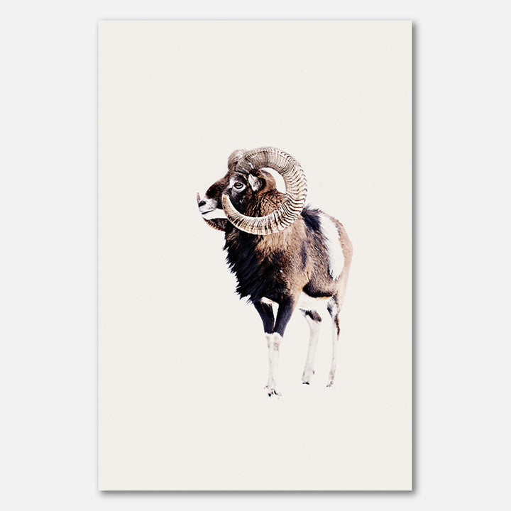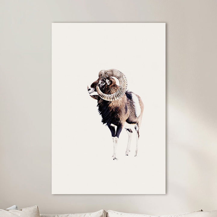 Dit schilderij vangt de kracht en elegantie van een majestueuze ram met indrukwekkende spiraalvormige hoorns. De wanddecoratie brengt een natuurlijk statement in huis en past perfect bij een stoer interieur of moderne woonkamer. Ideaal voor liefhebbers van dieren en opvallende kunst.
