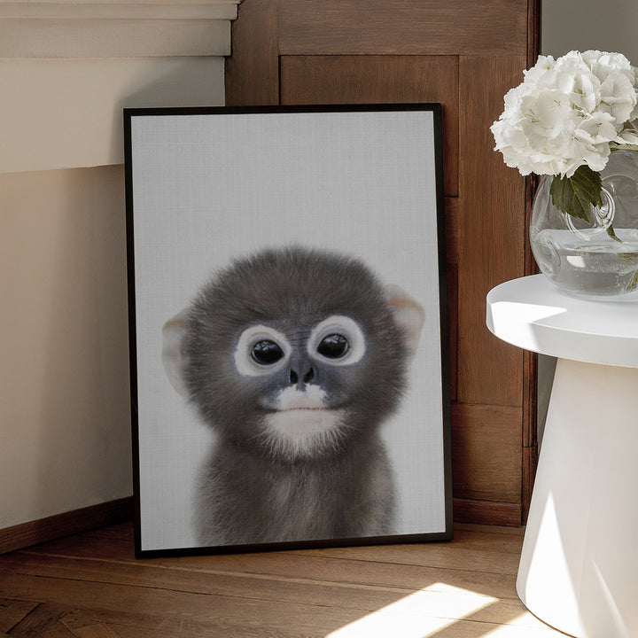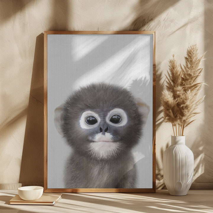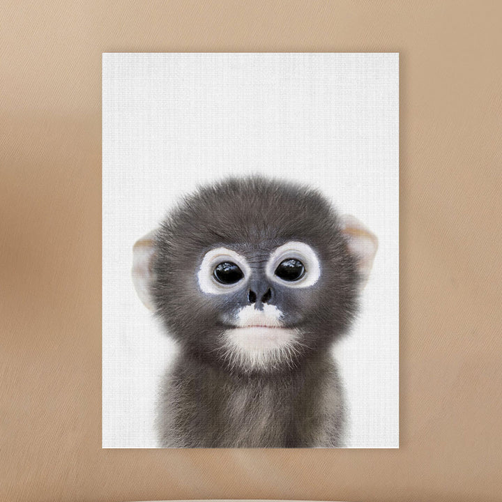 Dit vrolijke schilderij brengt direct een glimlach op je gezicht dankzij het guitige aapje dat nieuwsgierig om het hoekje gluurt. Deze schattige wanddecoratie past perfect in de kinderkamer, maar brengt ook speelsheid in een moderne of Scandinavische inrichting. Met zijn levendige dierenportret en heldere illustratie is deze illustratie ideaal voor wie van schattige dieren en warme, uitnodigende thema’s houdt.