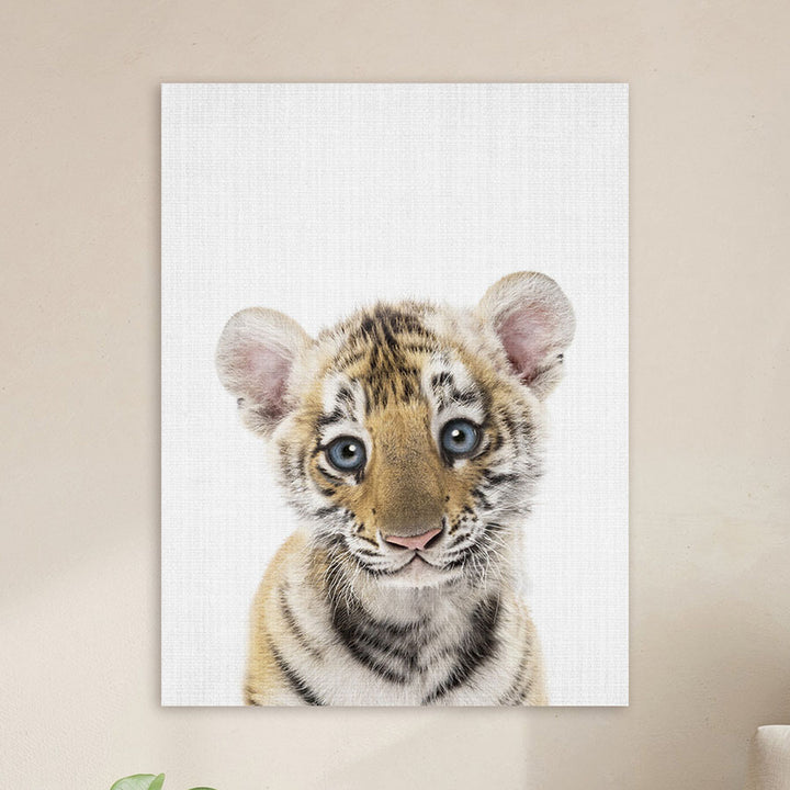 Deze schattige wanddecoratie brengt direct vrolijkheid in elke kinderkamer of babykamer. Het aandoenlijke tijgerwelpje steelt de show en nodigt uit tot gezelligheid, waardoor het perfect past bij een speels en lief interieur. De heldere kleuren zorgen voor een frisse en jeugdige uitstraling, ideaal voor een jeugdige sfeer.