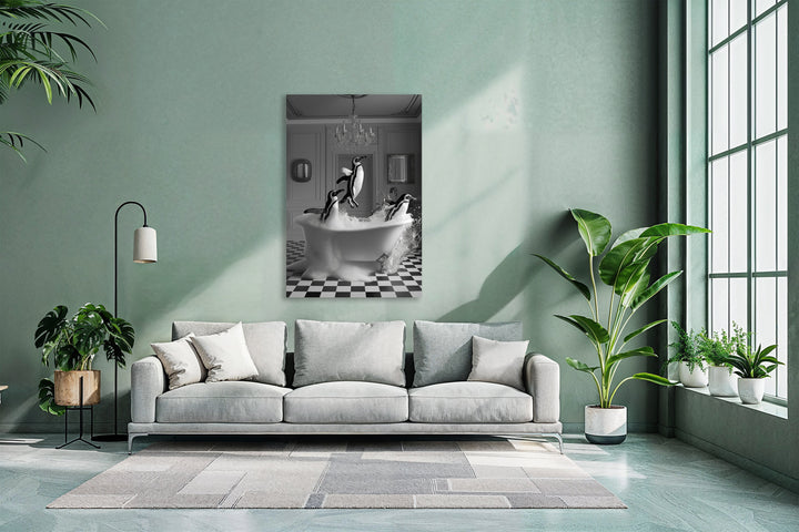 Deze vrolijke wanddecoratie brengt direct een glimlach in huis met de schattige pinguïns die samen feestvieren. Dit schilderij past perfect bij kinderkamers, speelse interieurs of een vrolijke Scandinavische woonstijl. De levendige sfeer van dit kunstwerk maakt iedere muur een stuk gezelliger.