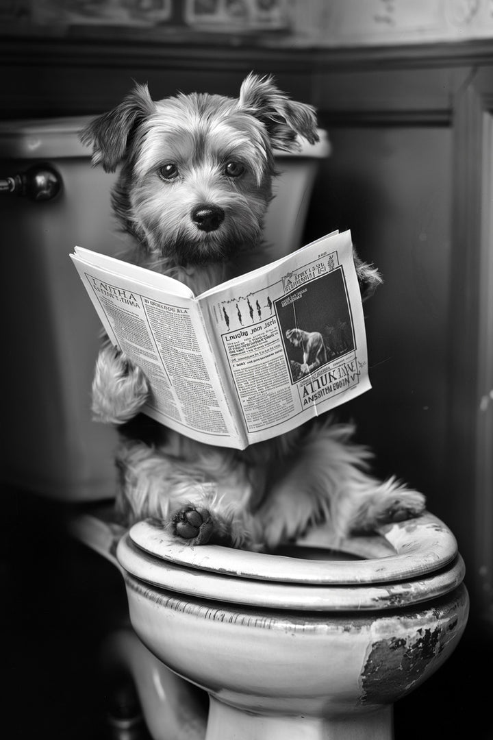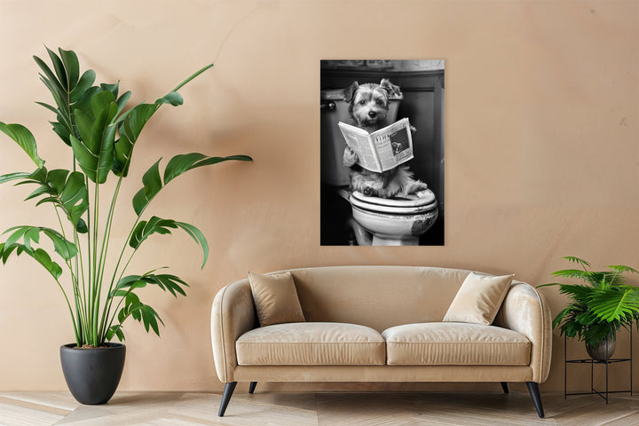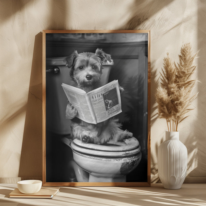 Deze wanddecoratie brengt humor en vrolijkheid in huis met een schattige hond in een onverwachte situatie, perfect voor liefhebbers van dieren en speelse accenten. Dit schilderij past geweldig in moderne, eclectische of minimalistische interieurs waar een knipoog gewaardeerd wordt. Geef jouw ruimte nét dat beetje extra met deze unieke blikvanger.