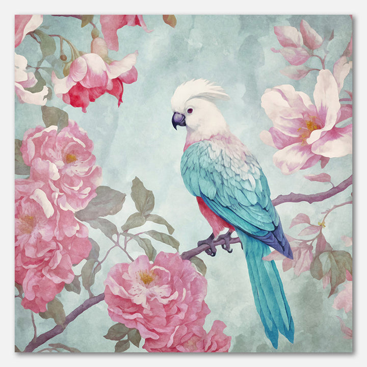Deze wanddecoratie brengt een dromerige lentesfeer in huis met een sierlijke vogel tussen zachtroze bloemen en groene botanicals. Ideaal voor liefhebbers van dierenillustraties en bloemen, perfect passend in zowel moderne als romantische interieurs om een vleugje natuur en rust toe te voegen aan elke ruimte.