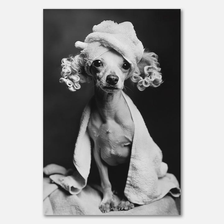 Dit schilderij toont een vrolijke puppy die volledig ontspant tijdens een luxueus bad, prachtig weergegeven in stijlvol zwart-wit. Het brengt direct een speelse sfeer in huis en voegt een glimlach toe aan iedere badkamer, kinderkamer of moderne woonruimte. Perfect voor dierenliefhebbers en een must-have als originele wanddecoratie.