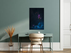 Deze vrolijke wanddecoratie brengt een zomerse sfeer met prachtige paarse bloemen die elk interieur opfrissen. Perfect passend bij een landelijke, moderne of Scandinavische woonstijl, zorgt deze schilderij direct voor een warme en uitnodigende uitstraling aan je muur thuis of op kantoor.